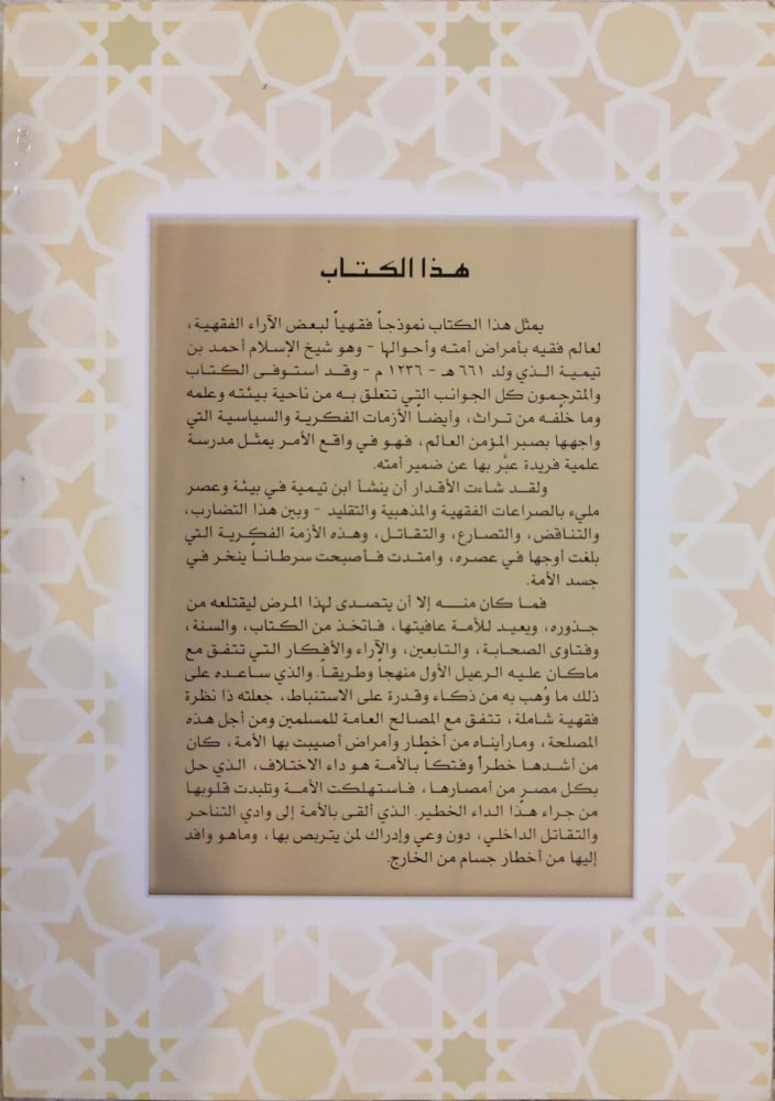 عنوان الكتاب : فتاوى إسلامية لقضايا معاصرة عند شيخ الاسلام ابن تيمية : دراسة في الثقافة الفقهية