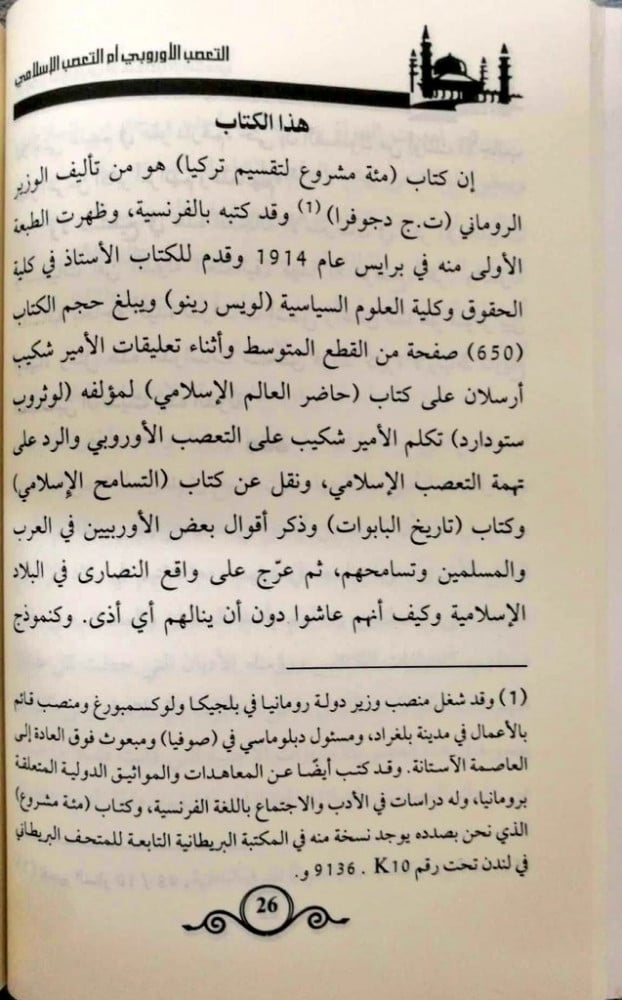تعليقات الأمير شكيب أرسلان على كتاب (مئة مشروع لتقسيم الدولة العثمانية) 1281 م 1913 م
