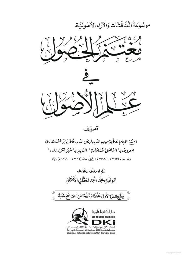 كتاب في أصول الفقه هو عبارة عن موسوعة المناقشات والأراء الأصولية وهو مخطوط يطبع لأول مرة وقد أشتمل على مقالات في المبادىء الكلامية والمبادىء اللغوية والأحكام كما تناول الأصول الأربعة وأووضحها وشرحها شرحاً وافياً .