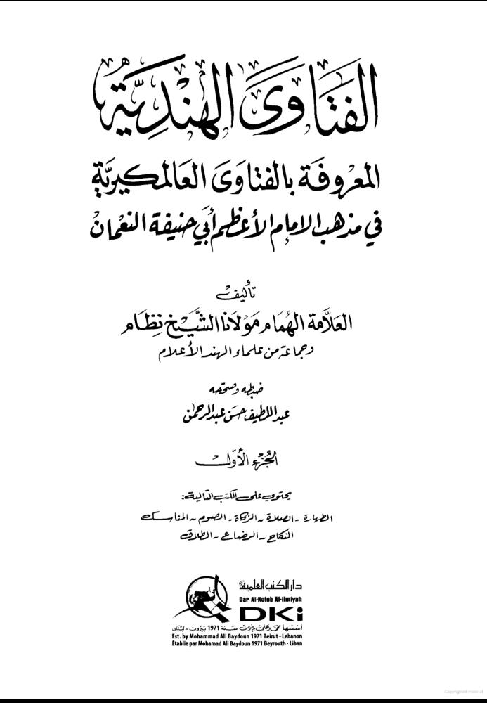 الفتاوى الهندية المعروفة بالفتاوى العالمكيرية في مذهب الإمام الأعظم أبي حنيفة النعمان 1/6