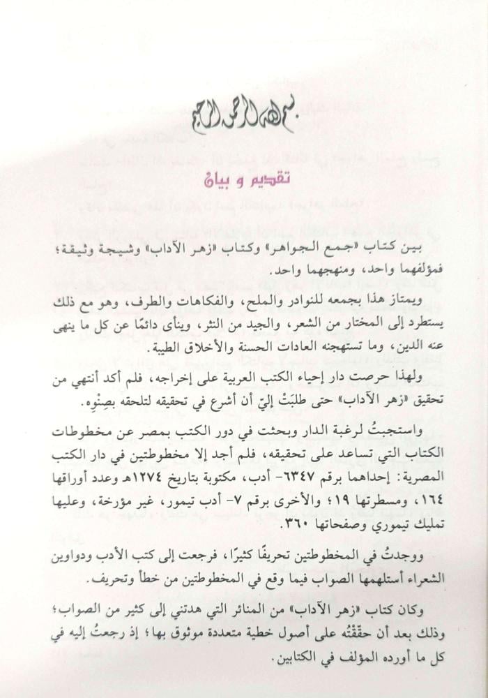 عنوان الكتاب : جمع الجواهر في الملح والنوادر