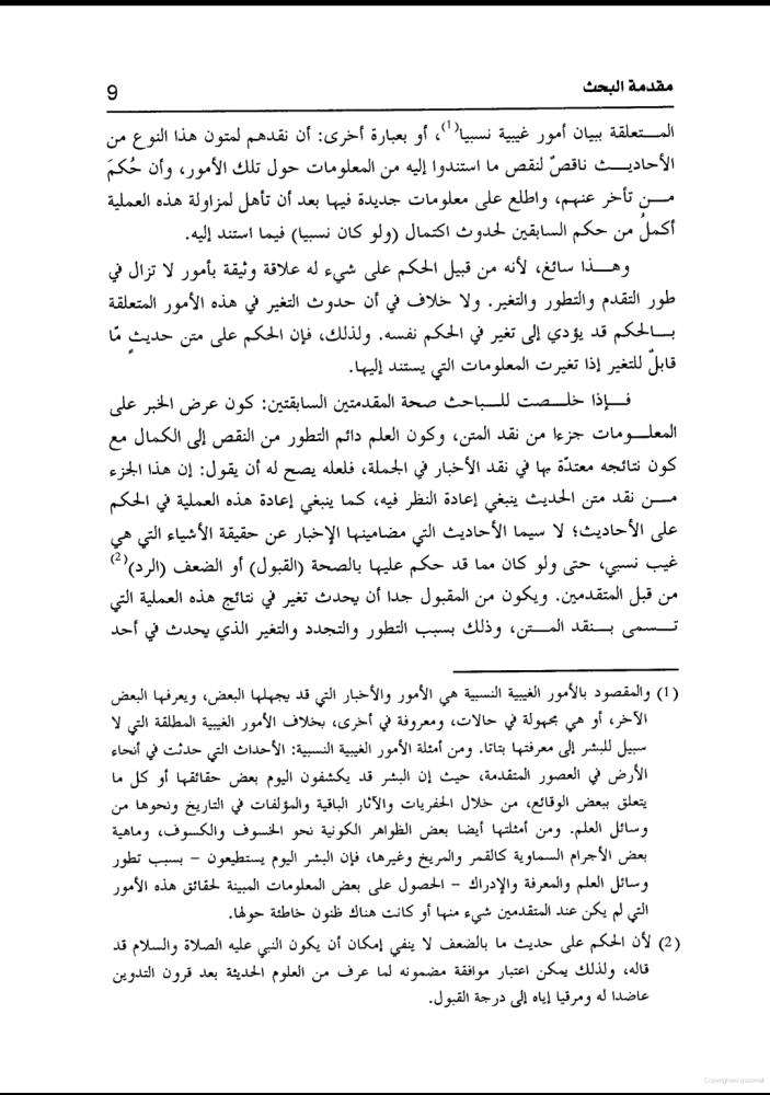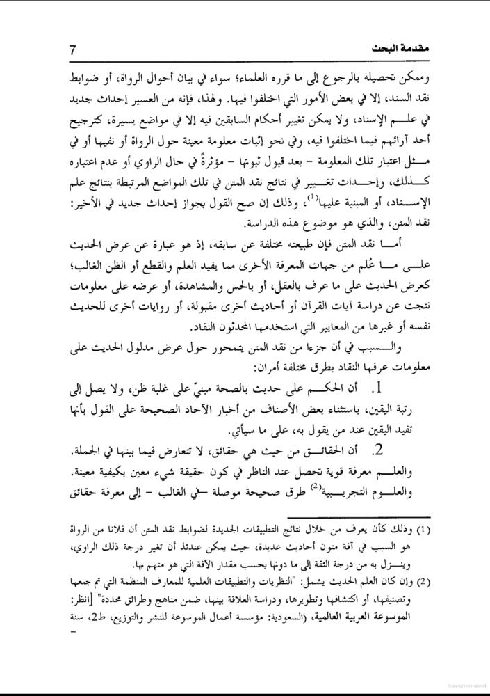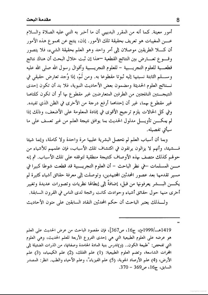 نقد متن الحديث في ضوء نتائج العلوم التجريبية : دراسة نظرية