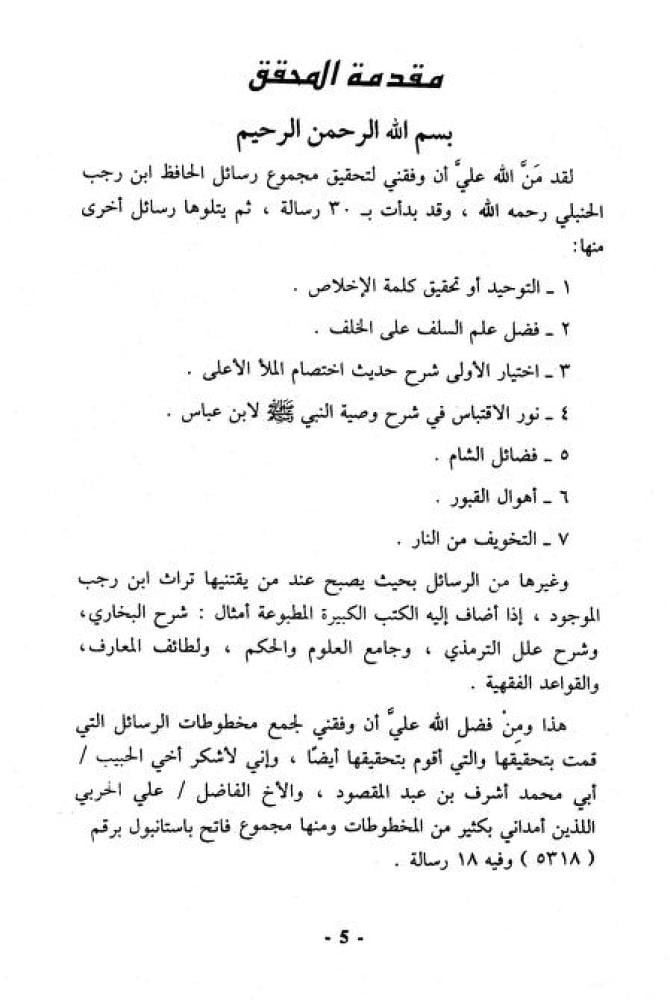 مجموع رسائل الحافظ ابن رجب الحنبلي 1/5