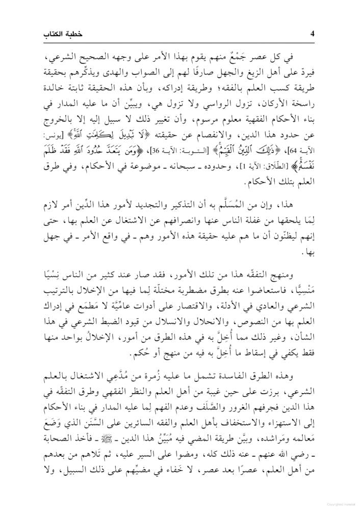 دراسة فقهية الغاية منها التذكير بحقيقة أمر التفقة في الدين وبالمنهج الفقهي الذي يُسار عليه في بناء الأحكام الفقهية وبيان أن العلماء لا يأتون أمور هذا الدين إلا عن بصيرة وعلم واستناداً إلى أمور شرعية ..