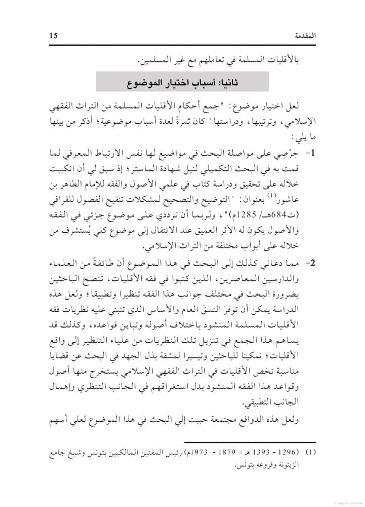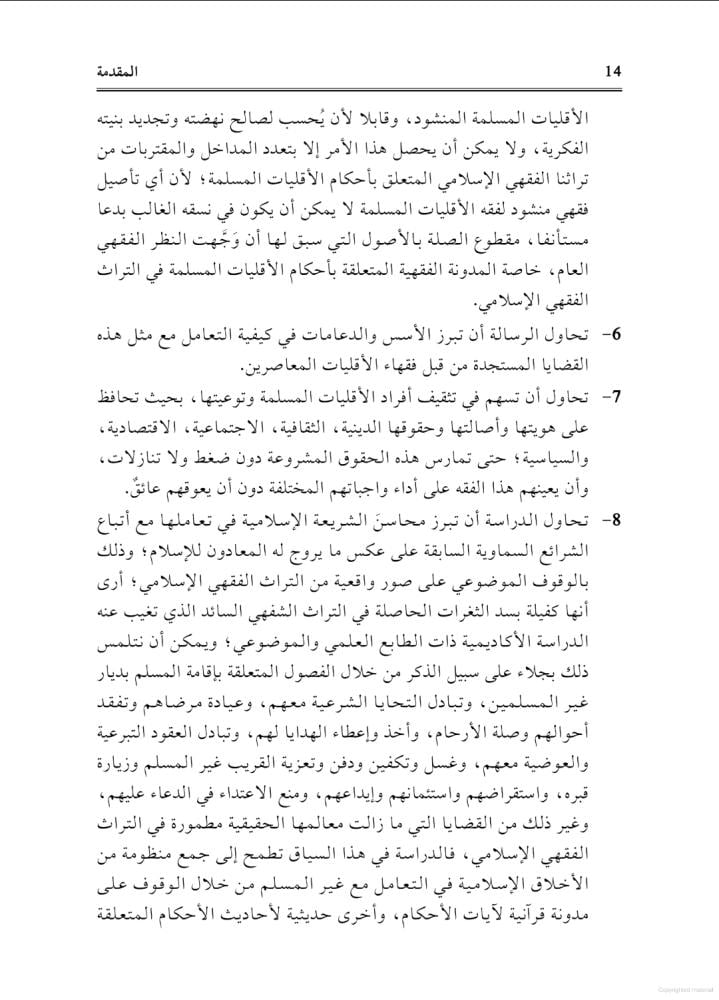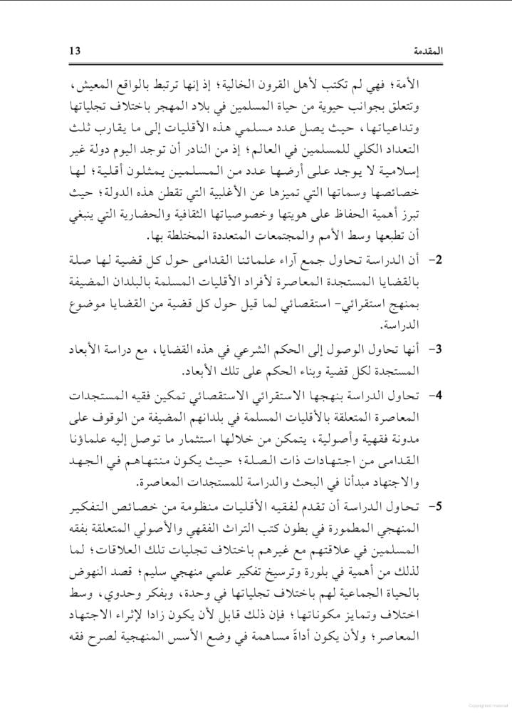 دراسة فقهية بين فيها المؤلف أحكام الأقليات المسلمة في التراث الفقهي الإسلامي حيث بين الأحكام التي تخص الأقليات المسلمة المنتشرة في دول العالم فعرض كيفية تعاملهم مع أمور الدين والحياة وكيفية التعامل مع ظروفهم في مجتمعاتهم الغريبة وغير ذلك ..