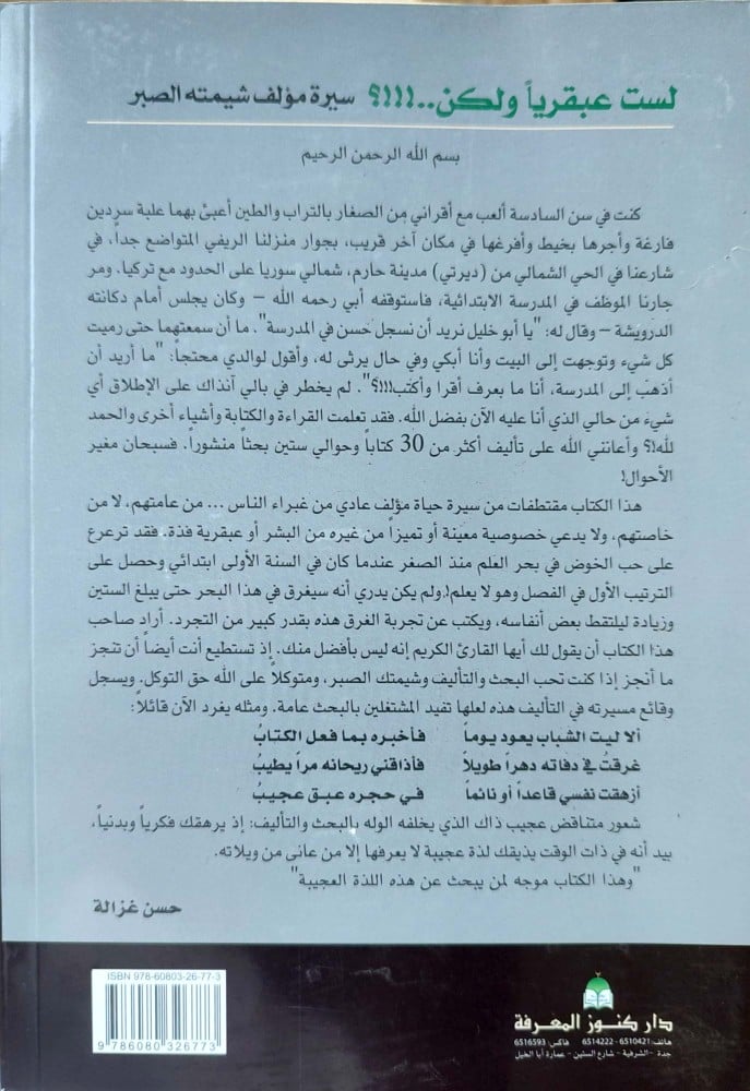 لست عبقريا ولكن : سيرة مؤلف شيمته الصبر
