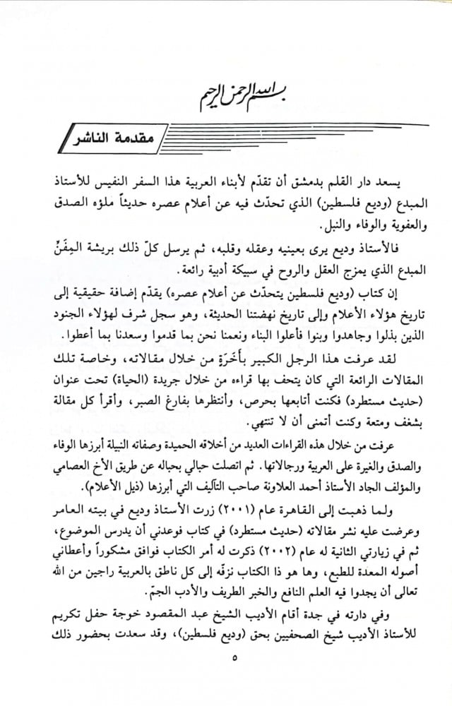 عنوان الكتاب : وديع فلسطين يتحدث عن أعلام عصره