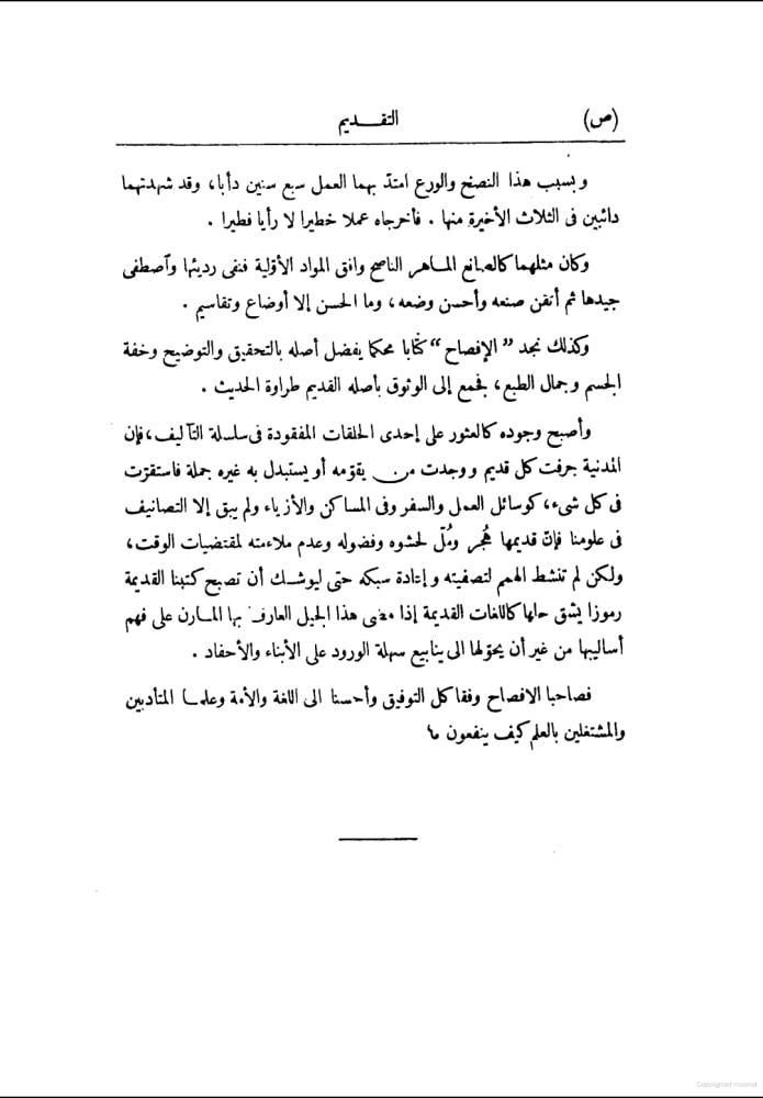 عنوان الكتاب : الإفصاح في فقه اللغة (تهذيب المخصص)