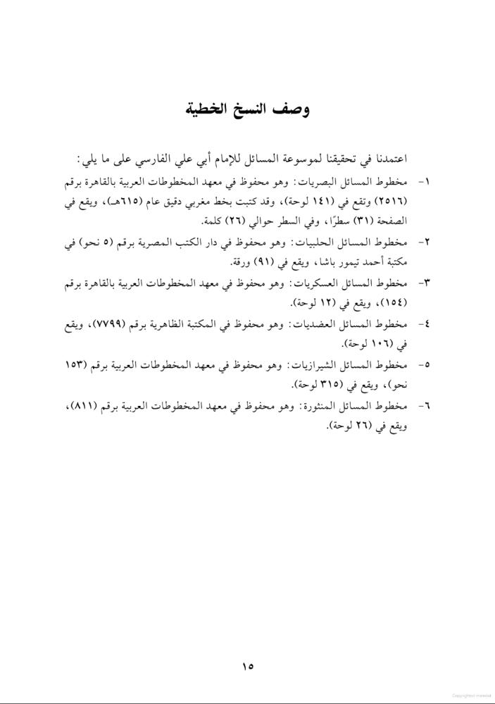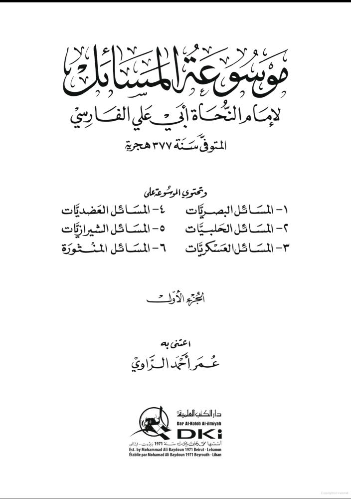 موسوعة المسائل لإمام النحاة أبي علي الفارسي 1/2