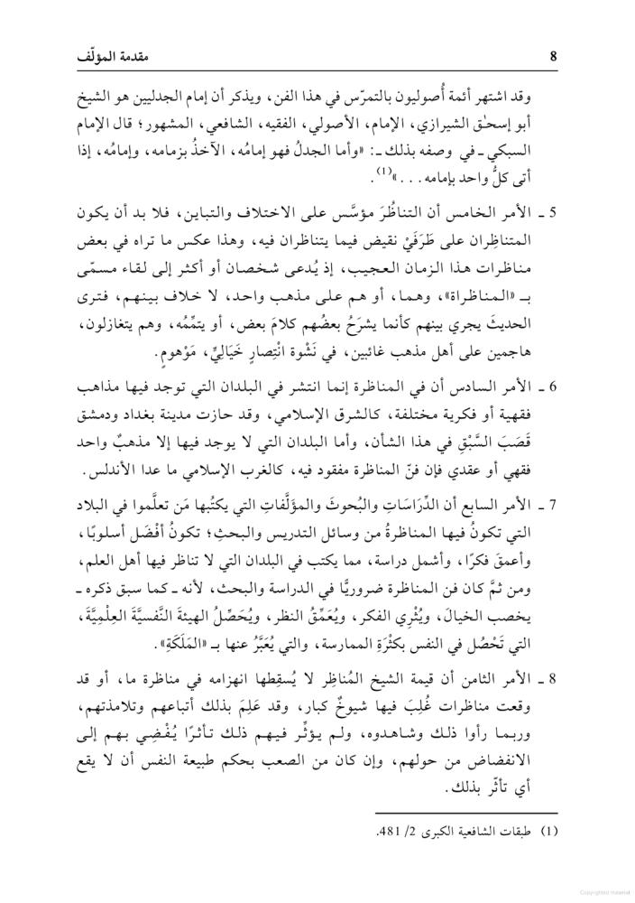مجموعة من المناظرات والمحاورات والنقاشات التي أغنت الفكر الإسلامي في مختلف المواضيع الفقهية والأصولية واللغوية، والتي اشترك فيها أئمة هذا الشأن من مختلف المذاهب مثل الأئمة الأربعة وابن الرشد والقاضي أبي بكر بن العربي وابن سريج الشافعي ومحمد بن الحسن الشيباني ومحمد بن داود الظاهري وأبي المعالي الجويني وأبي إسحاق الشيرازي والباقلاني وأبي الطيب الطبري وفخر الدين الرازي وغيرهم كثير ..