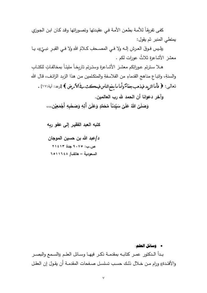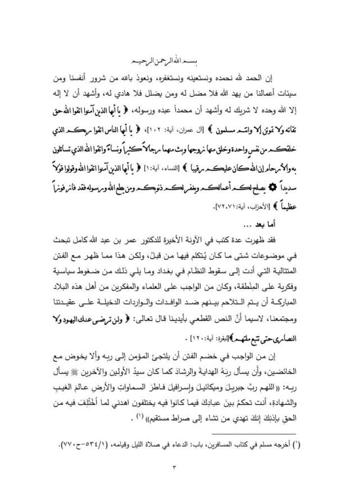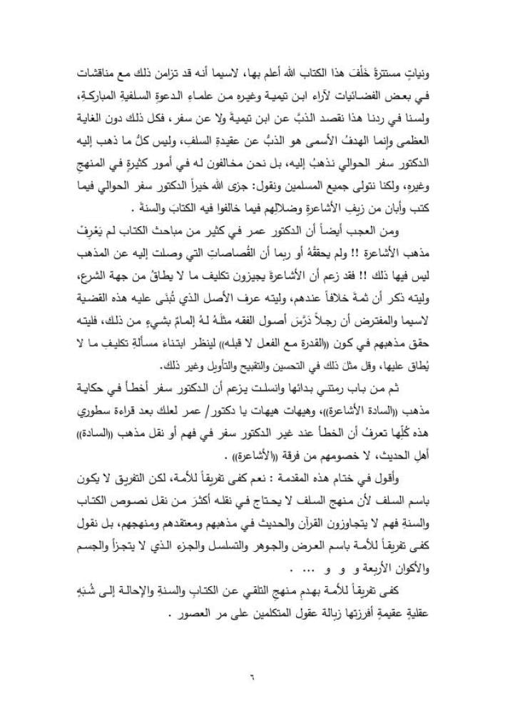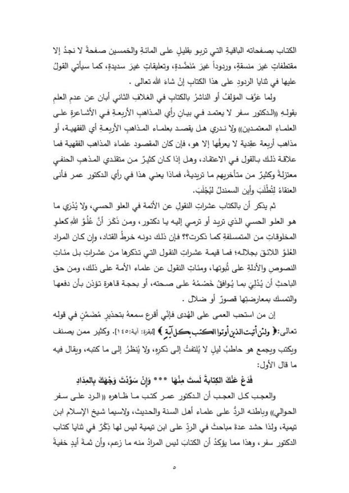 نقدٌ علميٌ موثقٌ لكتاب الدكتور عمر عبد الله كامل الموسوم بـ (كفى تفريقًا للأمة باسم السلف) ،وهو الكتاب الذي زعم أنه مناقشة لكتاب الدكتور سفر الحوالي ( نقد مذهب الأشاعرة في العقيدة )
