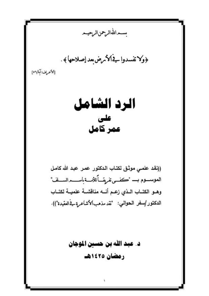 عنوان الكتاب : الرد الشامل على عمر كامل