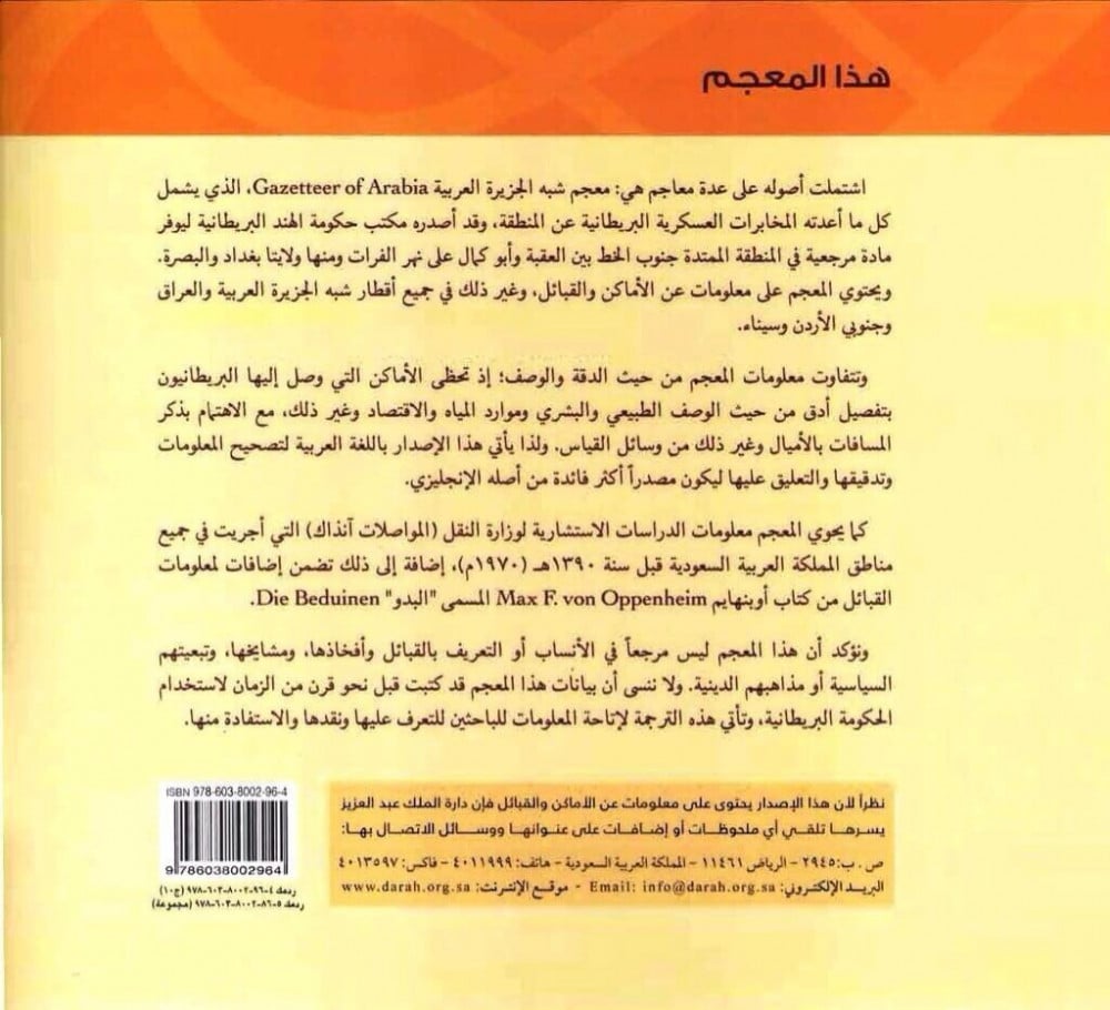 عنوان الكتاب : معجم البلدان والقبائل في شبة الجزيرة العربية والعراق وجنوبي الأردن وسيناء