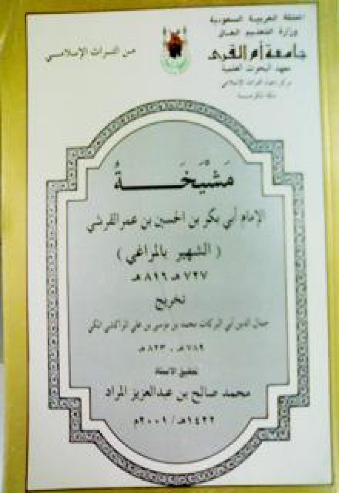عنوان الكتاب : مشيخة الامام أبي بكر بن الحسين بن عمر القرشي ( الشهير بالمراغي ) 727 - 816 هـ