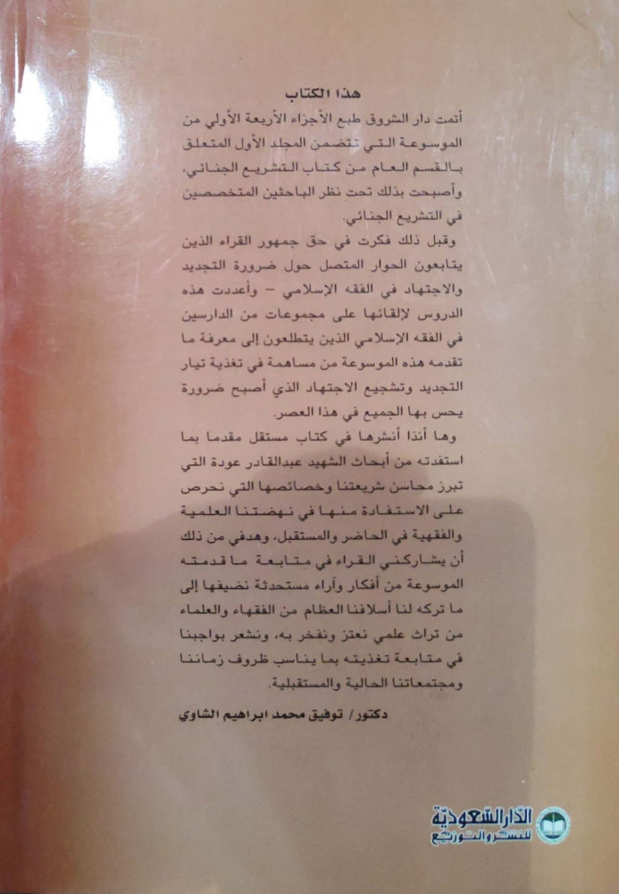 عنوان الكتاب : منافذ التجديد في الموسوعة العصرية للفقه الجنائي الإسلامي : دروس في محاسن الشريعة