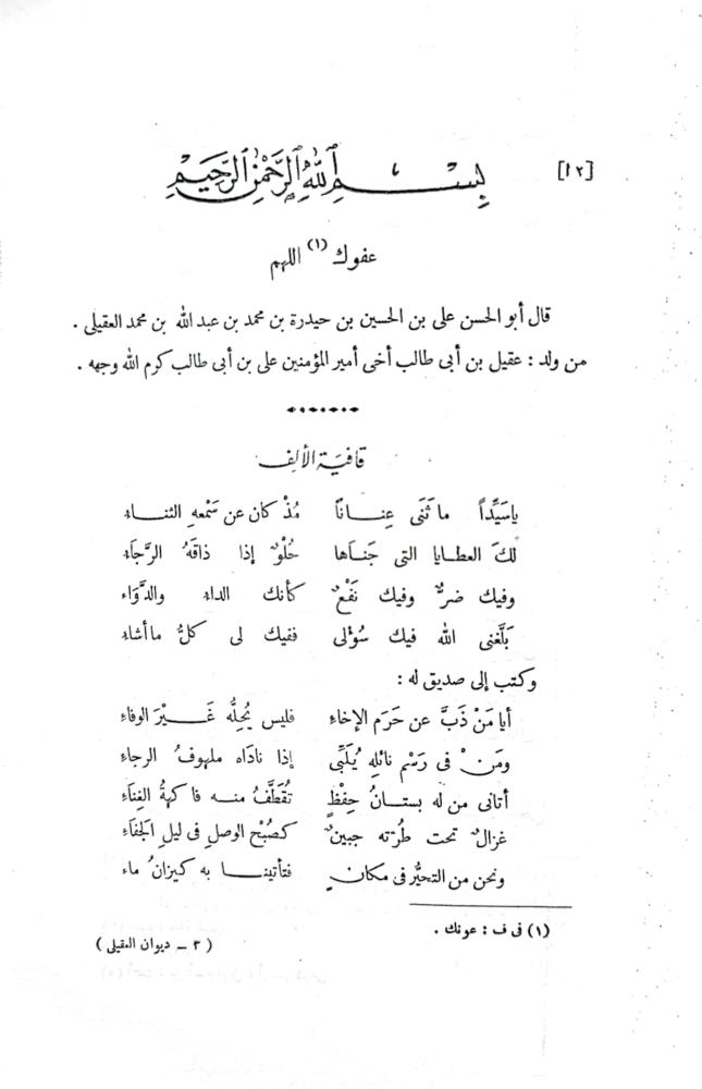 عنوان الكتاب : ديوان الشريف العقيلي (ت نحو 450 هـ)