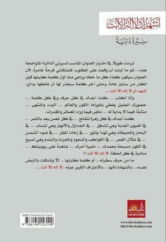 عنوان الكتاب : أشهد أن لا إله إلا أنت : سيرة ذاتية