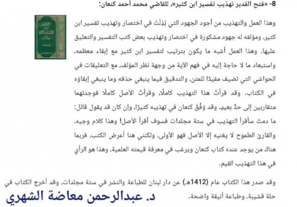 عنوان الكتاب : فتح القدير تهذيب تفسير بن كثير