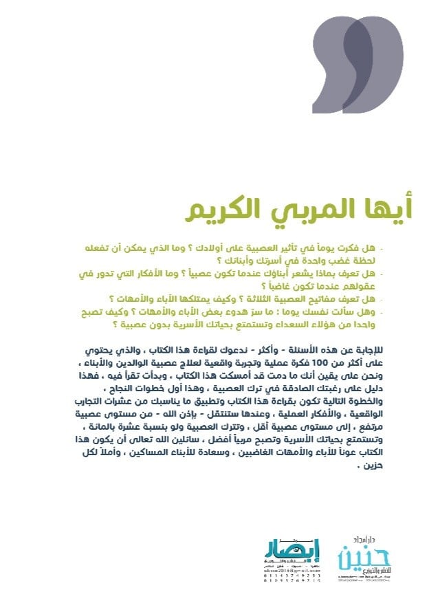 عنوان الكتاب : حياتنا الأسرية بدون عصبية : 100 فكرة لعلاج عصبية الوالدين والأبناء