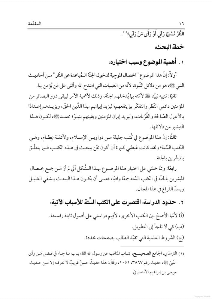 الخصال الموجبة لدخول الجنة والمباعدة عن النار : دراسة حديثية موضوعية في الكتب الستة